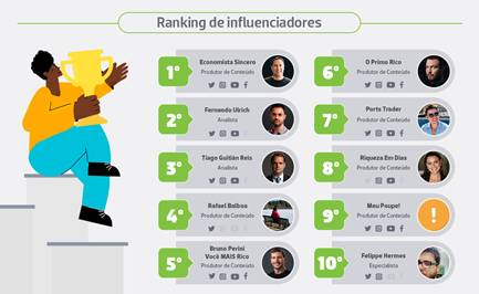 Além disso, ele foi reconhecido pela própria Associação Brasileira das Entidades dos Mercados Financeiro e de Capitais Educação Financeira e Certificações (Anbima), como um dos 10 principais influenciadores digitais de investimentos.