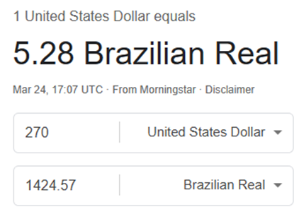 Com a variação cambial do dia 24 de março, no fechamento deste texto, esse é um valor que chega a cerca de R$ 1,42 milhão.