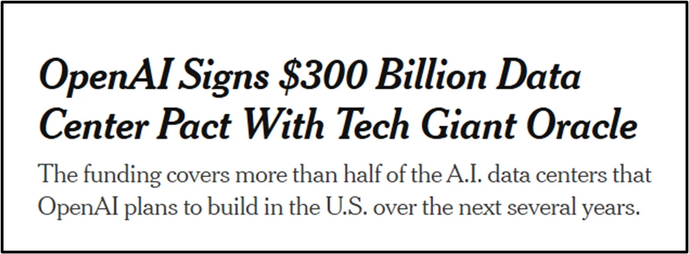 Entre os desdobramentos mais relevantes, a OpenAI assinou contrato de US$ 300 bilhões com a Oracle para compra de capacidade computacional ao longo de cinco anos, reforçando o papel da nuvem como pilar essencial para treinar e rodar modelos de IA de última geração.