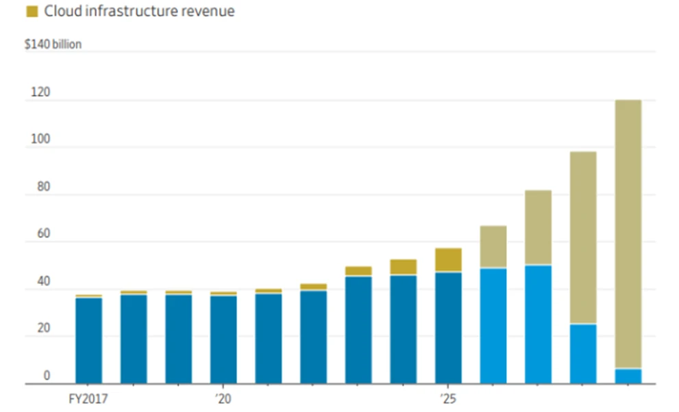 O catalisador para a valorização foi a divulgação de um backlog (carteira de encomendas) de US$ 455 bilhões em contratos de nuvem, crescimento de 359% em relação ao ano anterior e muito acima dos US$ 180 bilhões esperados pelo mercado.