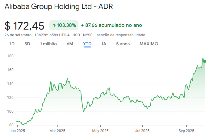 Não é por acaso que as ações da Alibaba (NYSE: BABA) quase dobraram no ano, acumulando alta próxima de 103%, até o fechamento deste texto.