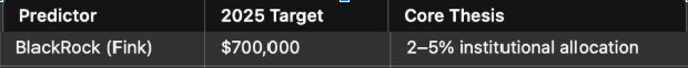E ele não é o único. A BlackRock, maior gestora do mundo, aponta que o bitcoin (BTC) pode chegar aos US$ 700 mil ainda em 2025.