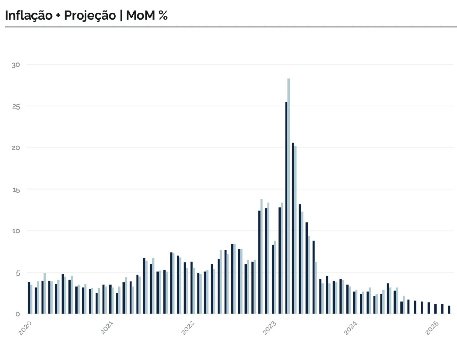 A taxa mensal de inflação, que havia alcançado 25,5% em dezembro de 2023, recuou para 3,7% em março de 2024, sinalizando uma mudança significativa de tendência. Essa melhora não ocorreu por acaso: foi sustentada por três pilares fundamentais. Primeiro, a valorização do câmbio, que reduziu a pressão dos preços de importados. Segundo, o ajuste fiscal de cerca de 5% do PIB, que contribuiu para conter os desequilíbrios das contas públicas.