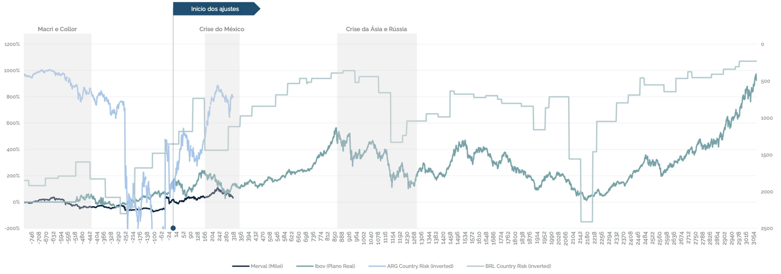 Em nossa avaliação, faz sentido revisitar a tese de investimento em Argentina, que recentemente atravessou alguns percalços, mas segue, em linhas gerais, avançando na direção que consideramos adequada. Temos acompanhado de forma consistente os desdobramentos no país vizinho e já exploramos esse racional em momentos anteriores.