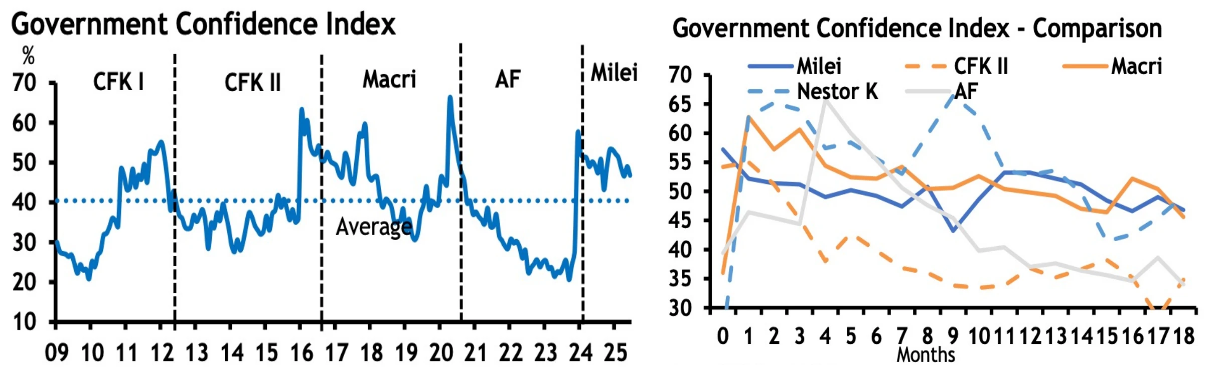Outro ponto que merece destaque é o ambiente político. Apesar do caráter severo das medidas de ajuste fiscal já implementadas — que incluíram cortes expressivos de gastos e reformas de difícil aceitação —, Javier Milei ainda ostenta índices de aprovação elevados. Esse apoio popular, longe de ser trivial, indica que uma parcela significativa da sociedade demonstra confiança em sua liderança e reconhece a urgência das mudanças em curso. Em termos práticos, trata-se de um capital político valioso: é ele que permite ao governo manter a tração necessária para conduzir reformas estruturais, oferecendo resiliência diante das resistências no Congresso e das inevitáveis tensões sociais que acompanham qualquer processo de ajuste profundo.
