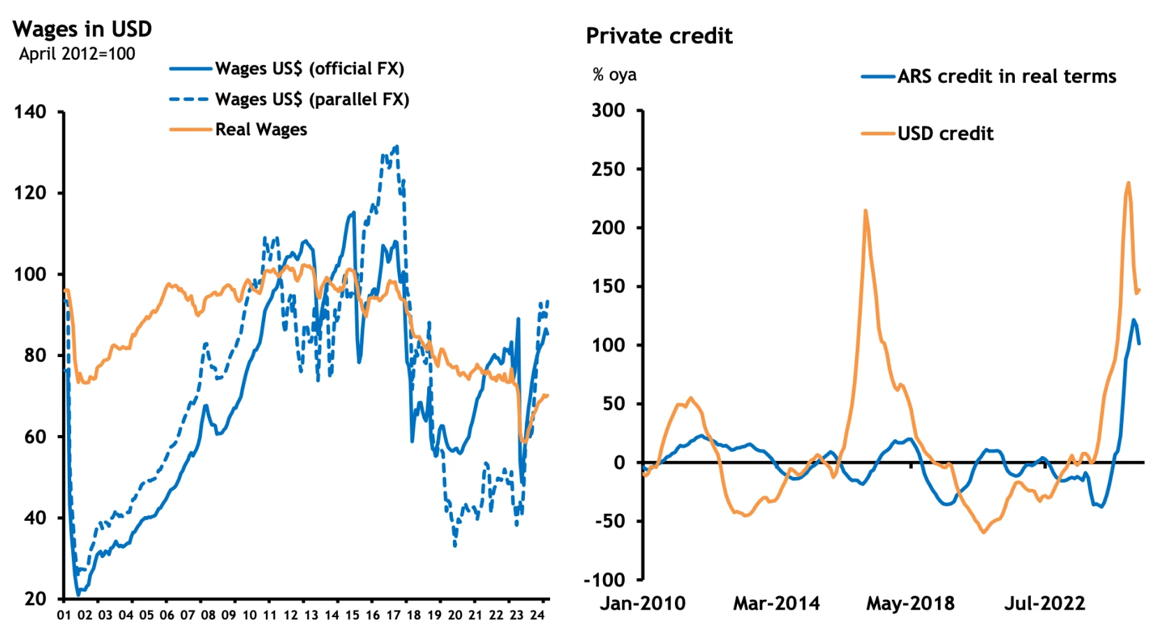 Além da melhora nos indicadores de atividade, a Argentina já começa a registrar sinais concretos de recuperação da renda real das famílias, o que se traduz em maior poder de compra e em um ambiente mais favorável ao consumo. Paralelamente, observa-se uma reativação do crédito privado, indicando que o sistema financeiro volta a enxergar condições de oferecer financiamento às empresas, permitindo novos investimentos e expansão dos negócios.