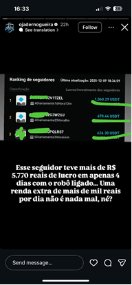 Tudo o que esse investidor precisou fazer foi instalar o robô de investimentos em sua conta, fazer seu aporte, clicar em um botão e pronto.