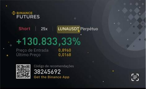 Em outro caso, com a criptomoeda LUNA, o retorno chegou a até 1.300 vezes o capital investido. Ao longo da sua trajetória, também capturou valorizações de 32.000%, 60.000% e até 130.000%.