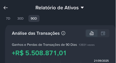 O resultado apresentado por Jader Nogueira não deixa margem para dúvidas. O extrato de +R$ 5.508.871,01 foi construído ao longo de 90 dias de operações intensas, onde a leitura de mercado e a gestão de risco foram soberanas.