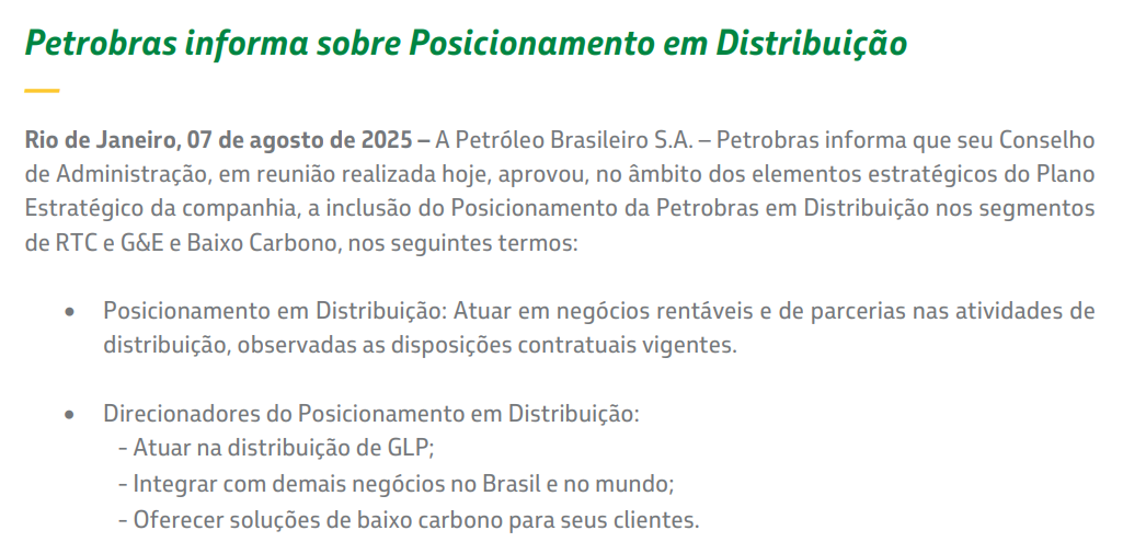 Já o segundo fator é mais preocupante. A estatal anunciou ao mercado, na quinta-feira (7), que seu Conselho de Administração aprovou, no âmbito do Plano Estratégico da companhia, a inclusão do posicionamento em distribuição nos segmentos de RTC, G&E, e Baixo Carbono.