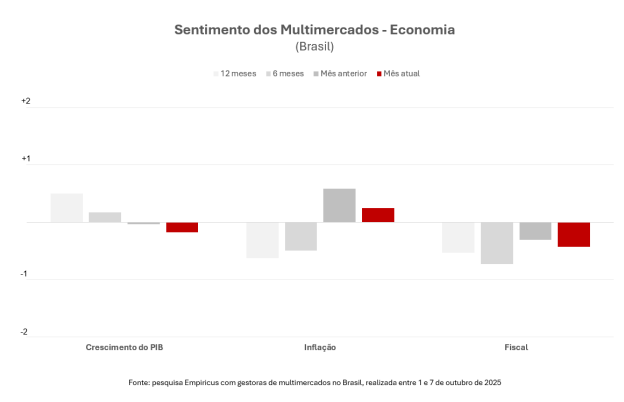 O sentimento dos gestores piorou nos indicadores de PIB, inflação e fiscal brasileiros. A questão fiscal, inclusive, é a grande vilã do Ibovespa neste início de outubro.