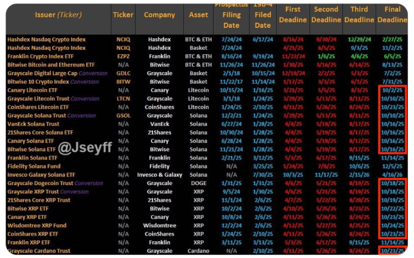 Tendências relevantes geralmente se iniciam a partir de um catalisador. Neste ano, a possível aprovação dos ETFs de Solana, XRP, Cardano, Dogecoin e Litecoin pode cumprir esse papel. ETFs de cripto têm sido um dos grandes temas do mercado em 2025, e em outubro se encerra o prazo final para aprovação de alguns desses produtos, todos com alta probabilidade de aprovação, segundo a Bloomberg.