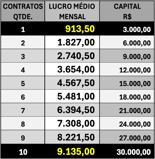 • Meta avançada: até R$ 9.000 mensais, com capital mais robusto.