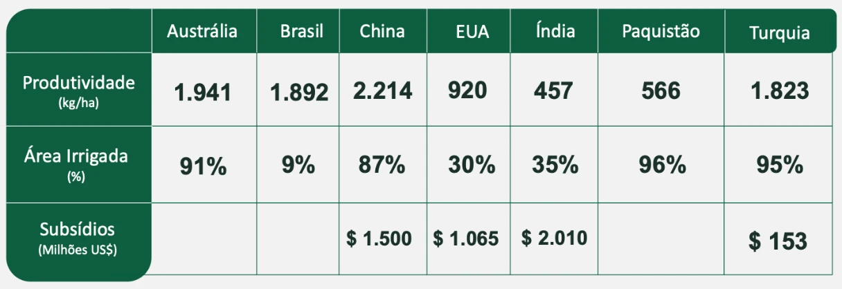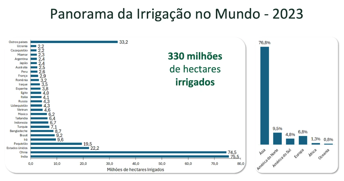 Para fins comparativos, essa prática é muito utilizada por países asiáticos, que correspondem a 76,8% das áreas irrigadas no mundo, o que permite até três safras de arroz no ano, por exemplo.