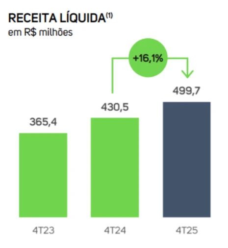 A Estapar (ALPK3) divulgou a prévia operacional do 4T25, com números sólidos mais uma vez. A receita líquida atingiu R$ 499,7 milhões, um novo recorde trimestral, com avanço de +16,1% frente ao trimestre anterior.