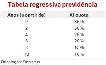 É importante ressaltar que essa contagem é feita por aporte. Cada contribuição entra em uma “fila” própria de tempo e passa a ser tributada pela alíquota correspondente ao período em que aquele aporte específico ficou no plano.