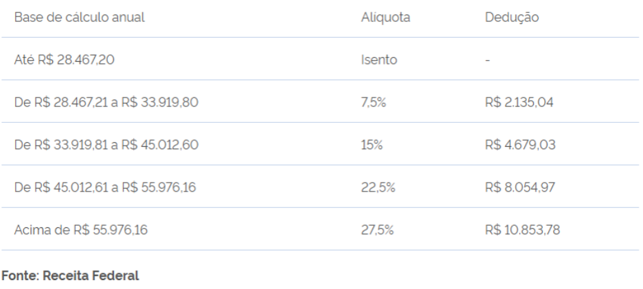 O modelo progressivo ajusta a alíquota de IR que será cobrada com base em sua renda anual no momento do resgate, como mostra a tabela abaixo: