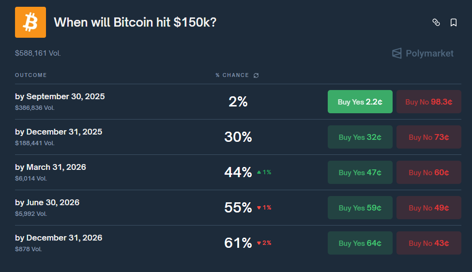 Se você acredita que o preço do Bitcoin alcançará a marca de US$150 mil até o final do ano, uma forma eficiente de expressar essa visão é por meio do Polymarket. Nesse caso, o retorno potencial oferecido pela plataforma é superior ao que seria obtido simplesmente comprando o ativo diretamente.