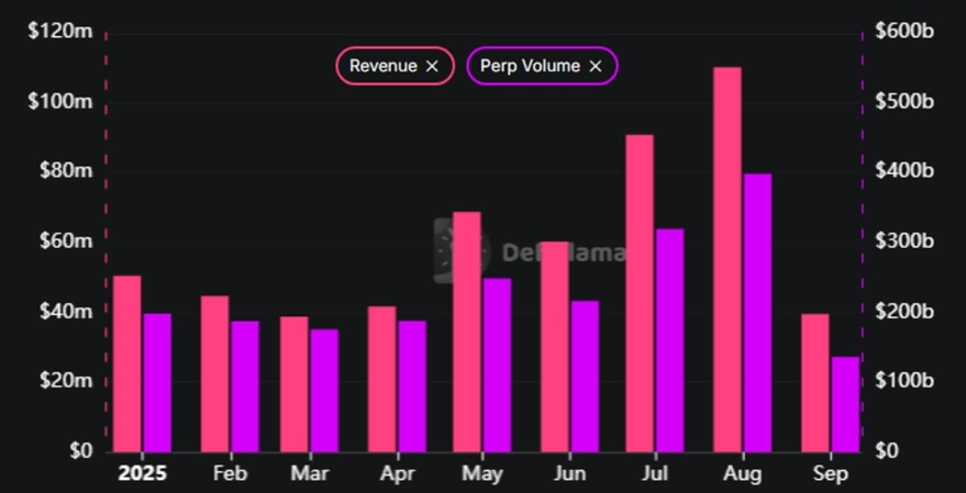 Caso você tenha perdido: a Hyperliquid atualmente movimenta cerca de US$400 bilhões em volume mensal de perpétuos (perpétuos = operações alavancadas em criptomoedas) e gera mais de US$100 milhões em receita mensal. 👇