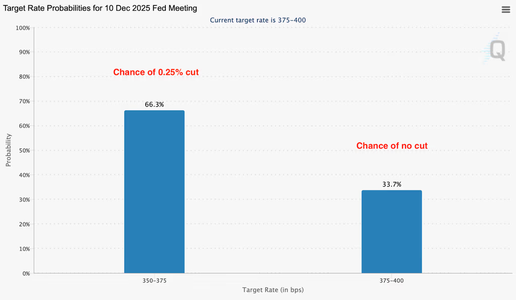 Como já comentei, devido a essa potencial restrição nos dados econômicos, as chances de um corte na taxa de juros de dezembro não tão grandes quanto antes: