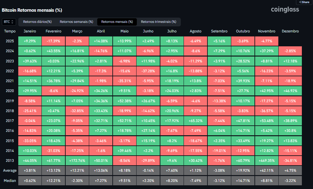Novembro é historicamente o melhor mês para o mercado de cripto com um retorno médio de 42,11%.