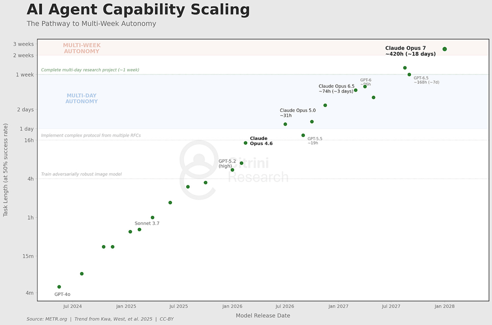 Esse avanço gradual em direção à chamada “autonomia multi-week” sugere que, se a tendência continuar, veremos agentes capazes de completar projetos cada vez mais complexos sem intervenção humana.