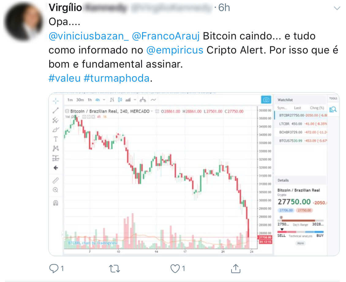 No primeiro momento, eu fiquei incrédulo com a capacidade do assinante de ser tão estóico, ao ver uma queda dessas no bitcoin e reagir, assim, tão confiante.