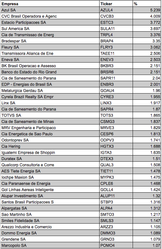O corolário prático do argumento apontaria para indicação de compra para SMAL11. E isso vale, sim. Mas há uma nuance. Repare na composição do ETF: