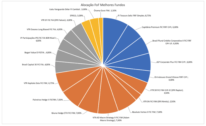 Tudo isso só foi possível por conta do brilhantismo e da competência da Luciana Seabra. Ela selecionou os melhores fundos do mercado e os colocou numa carteira idealizada dos sonhos. Então, a gestora Vitreo montou um Fundo de Fundos para perseguir a carteira teórica proposta pela Luciana — feita sua própria diligência, o mais do que competente Jojo, gestor do FoF, referendou a indicação da Luciana e tornou a idealização original em algo concreto. Você pode investir no FoF Melhores Fundos clicando neste link.
