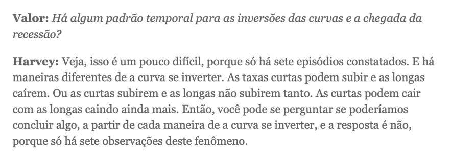 Precisaríamos de 7 mil séculos de história econômica mundial para concluir seguramente sobre o passado da yield curve (o que sequer garantiria extrapolações para o futuro).