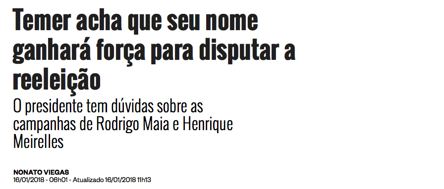 Não falo da figura pessoal do presidente Temer. Não é disso que estou falando. A pessoa em si não importa. Michel Temer pode até disputar a reeleição, mas não tem qualquer chance de se reeleger.