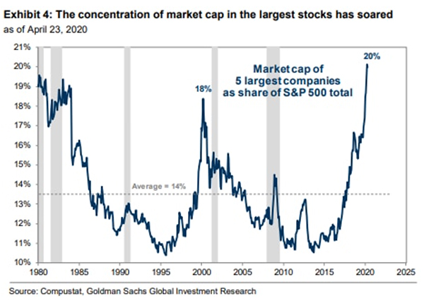 2. Se essas “supertechs” vão dominar o mundo, hiperbolicamente, claro, o S&P e os índices de ações norte-americanos passarão a ser más representações do comportamento geral das empresas dos EUA. No limite, ao olhar para o S&P, você estará olhando para o desempenho das FAANGs, não para o comportamento de uma empresa americana típica. É como se saíssemos do Mediocristão (em que as informações estão centradas na média, e uma única informação, qualquer que seja, explica pouco de toda a amostra) para o Extremistão (em que poucas informações podem explicar tudo; muito peso das poucas FAANGs entre as centenas de empresas do índice).