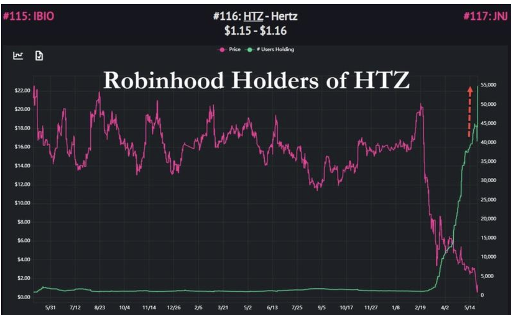 Eu não tenho qualquer interesse particular nas ações da Hertz. Imagino que você também não tenha. A questão aqui, porém, não é particular. Ela é geral. Essa dinâmica tem refletido um comportamento típico e, ainda mais interessante, mundial do investidor pessoa física. Ele tem comprado ações de empresas em dificuldades financeiras, atraído por uma expectativa de altíssimo retorno, ignorando métricas canônicas de risco e princípios elementares de diversificação.
