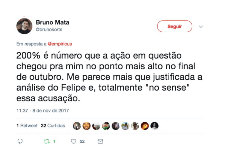 “Estava comentando com um amigo meu como você e sua empresa mudaram o paradigma do pequeno investidor no Brasil. Meus sinceros parabéns, Felipe! Você tem o Dom de Midas, onde toca vira ouro.”