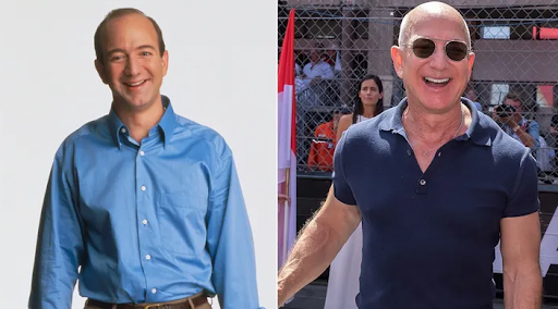 Mas o que chama atenção não é o barco. É o próprio Bezos. Compare fotos dele no início da Amazon com as de hoje. Antes, um executivo nerd, com cara de workaholic. Hoje, aos 60 anos, está em forma, musculoso, bronzeado. Vitalidade de sobra.