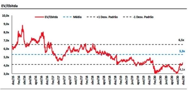 Dê só uma olhada no EV/Ebitda da empresa, que mede a relação entre o Enterprise Value e a capacidade de geração operacional de caixa (Ebitda).