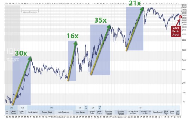 Na época, o índice tinha acabado de ultrapassar a marca dos 100 mil pontos e, enquanto alguns “especialistas” afirmavam que essa marca poderia ser apenas uma ilusão temporária, eu e meu sócio Felipe Miranda alertávamos nossos leitores do contrário.