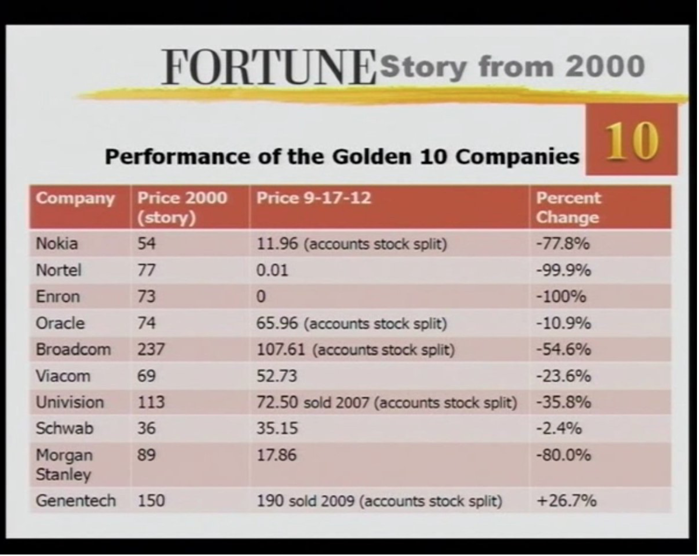 Com isso, os editores da Fortune propunham uma lista de dez empresas que triunfariam destacadamente na década por vir, justificando os catalisadores de cada uma delas.
