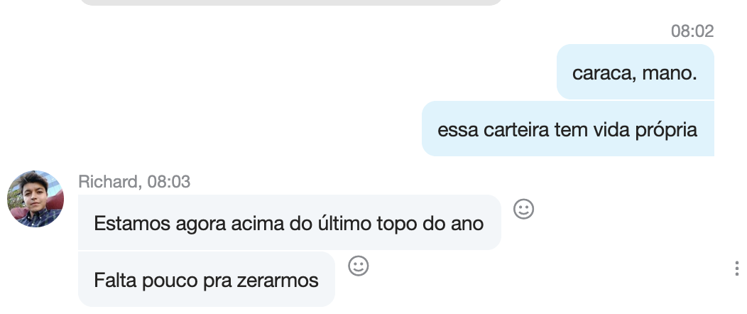 A cada manhã que o Richard computa o desempenho da carteira, ficamos embasbacados, absolutamente surpresos com a reconfiguração do cosmo enquanto fechávamos os olhos.