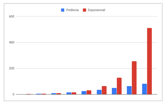 Se as funções de potência crescem rápido, as funções exponenciais disparam. É até covardia compará-las.