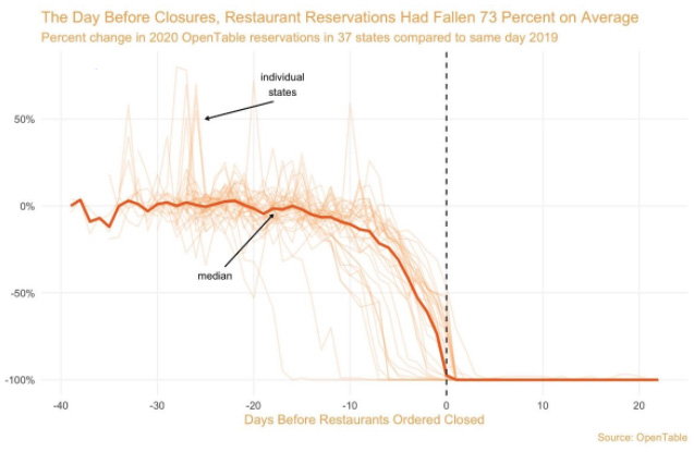 Semanas antes do início formal para fechar os estabelecimentos comerciais, as reservas começam a cair, e despencam em questão de dias, convergindo naturalmente para o zero da formalidade.